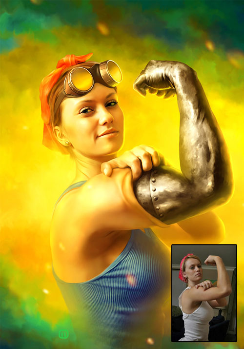 Сегодня работы MichaelO не только коммерчески успешны, но и стилистически уникальны. Мишель работает по фотографии. Придумывает концепт изображения, подыскивает подходящую модель, делает около 400 кадров за съемку, отбирает 3-4 лучших, а затем садится за десктоп, жевать Cheetos и преобразовывать фото до неузнаваемости. Инструментарий художника составляют Canon 5D с объективом 50мм, 1.4, четырехядерный PC с 6 гигабайтами оперативки, Photoshop CS2.